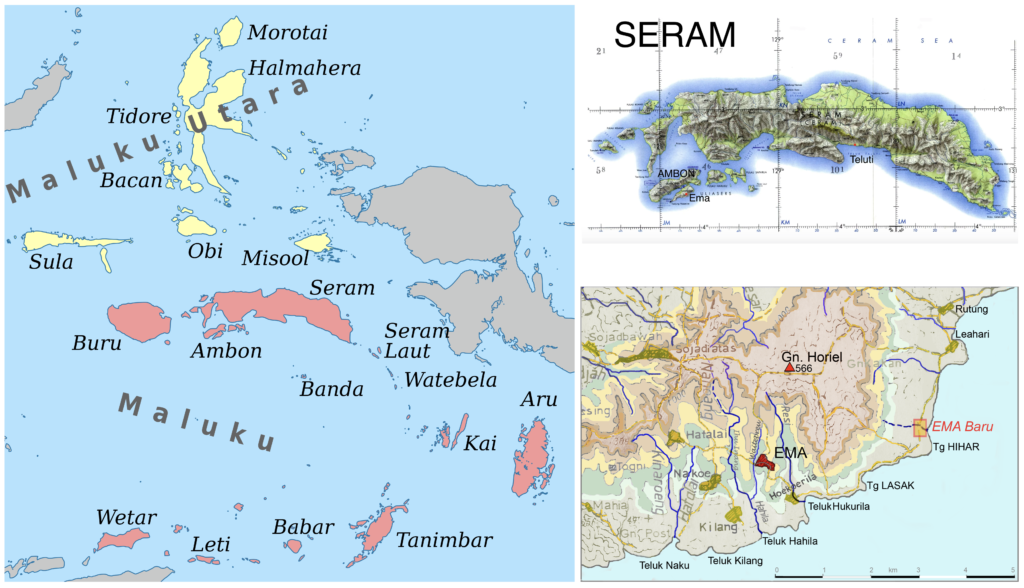 Georg Everhard Rumphius (1627-1702) beschreef Ema “een groot dorp in de bergen 2 mijl van het fort naar het zuidoosten, ongeveer een half uur van het strand naar boven op een rotsachtige berg op een moeilijk begaanbare weg met diepe dalen”. Ten noorden van het dorp wordt het begrensd door de rivier Huwai-Inai die in de rivier Waihoka uitkomt en de grens vormt met de dorpen Kilang en Hukurila.