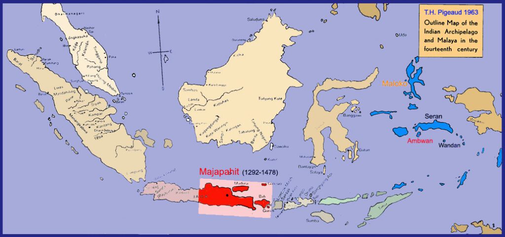 De legende van de Majapahit-bron in Ema begint niet in de bergen van Ambon, maar aan het hof van het machtige Javaanse koninkrijk Majapahit. Rond de late 14e eeuw, onder koning Hayam Wuruk en zijn ambitieuze rijksbestierder Gajah Mada, streefde het rijk naar maximale invloed. Gajah Mada’s beroemde “Palapa Eed” (Eenwordingseed gebied Nusantara te verenigen) dreef expedities naar de verste eilanden, waaronder de specerijenrijke Molukken. Deze missie was een zorgvuldig geplande geopolitieke strategie: Java verkeerde in een periode van interne spanningen, en het veiligstellen van bondgenootschappen in de specerijenhandel was cruciaal voor rijkdom en stabiliteit.